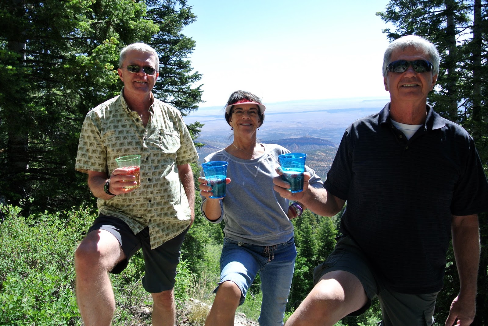 June took us to the North Rim of the Grand Canyon for our annual visit. However, there was a change in the itinerary. Instead of the guys hiking from the South Rim to the North Rim, they elected this year to travel with us by car! directly to the North Rim and then did a hike there. Brother Jim, sister-in-law Liz and nephew Jimmy (along with Liz's sister and her husband and their granddaughter) joined us for the trip this year.